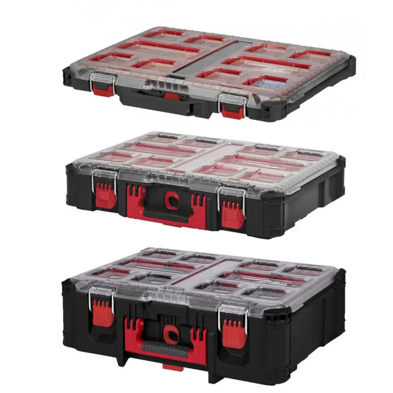 Milwaukee has revolutionised tool transportation, organisation, and storage for the trades with the new PACKOUT™ Modular Storage System. Designed to provide users with the ability to interchange and interlock a wide assortment of heavy duty tool boxes, organisers, and storage totes in multiple different configurations.