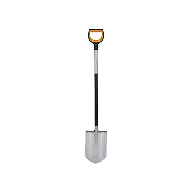 Gardening is a demanding pastime, and Fiskars Xact™ tools incorporate purposeful innovation and a precise fit for ultimate performance, allowing you to do more of what you love. The Xact™ pointed spade, size L, features a boron steel head solidly welded to a smart, easy-to-hold steel shaft. The extra strong, pointed spade with a non-slip step board is sharpened on the edge and sides, making it ideal for penetrating hard soil. Its SoftGrip™ push-pull D-handle provides assured digging control. This thoughtfully designed spade's shaft is optimized for ergonomics. Fiskars Xact™ tools work with your body, using lightweight, yet very durable, materials.
