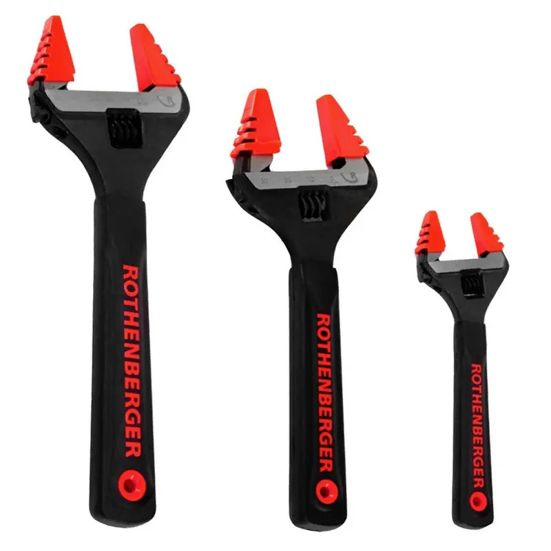The Rothenberger 18047 Wide Jaw Wrench Set includes three adjustable spanners in 6, 8, and 10 sizes.