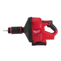 World's first hand held drain cleaner on a 18V battery with automatic feed and retract that can be used with 6 mm, 8 mm and 10 mm spirals from both MILWAUKEE® and other manufacturers, in pipes from 32 mm up to 75 mm, up to 15 m down the line, eliminating all electrocution hazards users encounter today with their corded tools