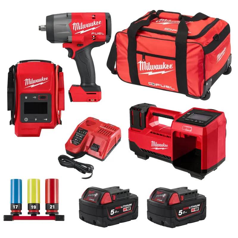 Milwaukee 3 Piece M18 Automotive Tool Kit - 2 x 5.0Ah Batteries, Charger & Tool Bag