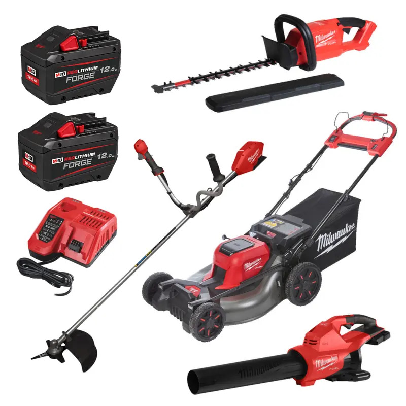 Milwaukee M18 Fuel 18v 4 Piece Gardening Powertool Kit - 2 x 12.0ah Batteries & Charger