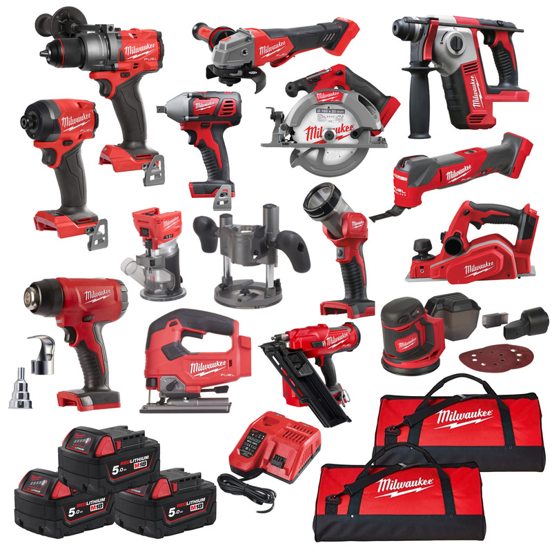 Milwaukee 14 Piece Power Tool Kit 18v - 3 x 5.0ah Batteries