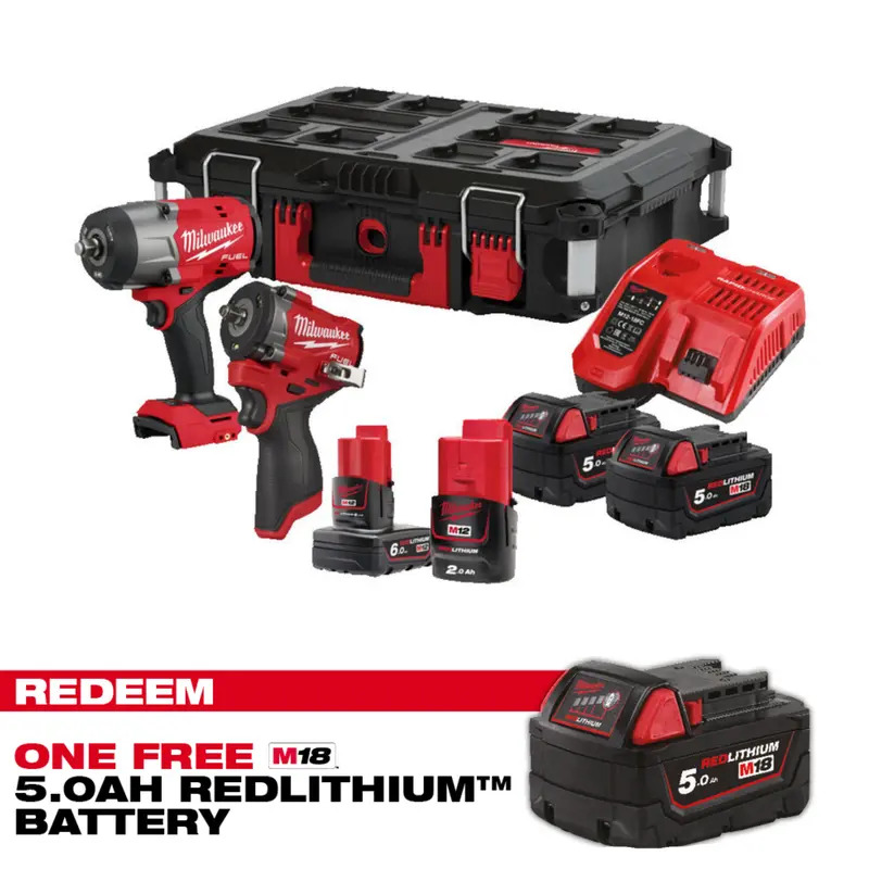 Milwaukee M18FPP2AQ2-564P 18v 1/2" / 12v 3/8" Fuel Impact Wrench Twin Kit Packout Case (CLAIM FREE 5.0AH BATTERY VIA MILWAUKEE REDEMPTION)