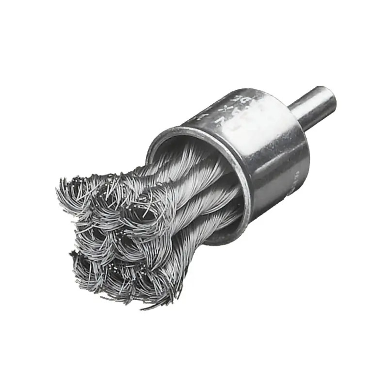 End brushes with knotted wire are used for medium duty brushing such as cleaning corners, holes and moulds and for removing paint and rubber residue.