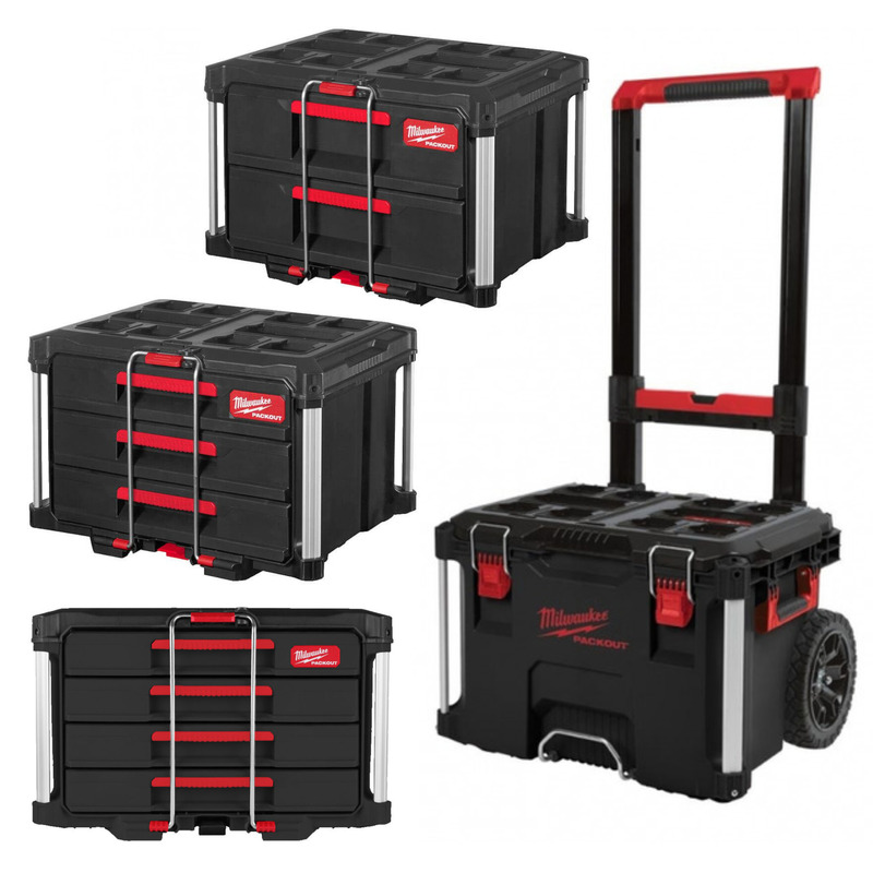 Milwaukee 4 Piece Packout Bundle - Trolley Case, 2 Drawer, 3 Drawer & 4 Drawer Tool Boxes