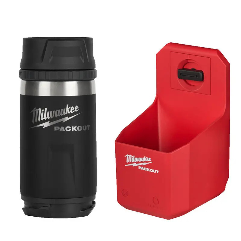 Milwaukee 4932480706 Packout Cup Holder & 4932498978 Packout 355ml Bottle Sip Lid Black